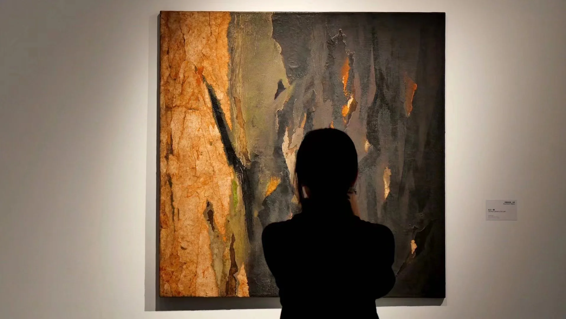In the last part of the exhibition, Mateu’s "Burnt Forest" and "Nature and Shadows" series are on display. Both are derived from her passing through a fire-ravaged forest when she was grieving over the loss of a close friend. There she experienced darkness, silence, and the absence of the living. But in the dead void of all, the artist saw the essence of life, which inspired her to transform her feelings into painting, poetry, light, and beauty. Mateu picked up branches and bark from the forest and created series of works with mixed media. She stacked and collaged the materials and then combined them into abstract pictures, composing new movements with dead natural objects, while giving them various colors, textures, and rhythms. In this poetic abstract world, viewers can calm their minds and meditate on personal life experiences, the relationship between man and nature, and the sustainability of the ecological environment.